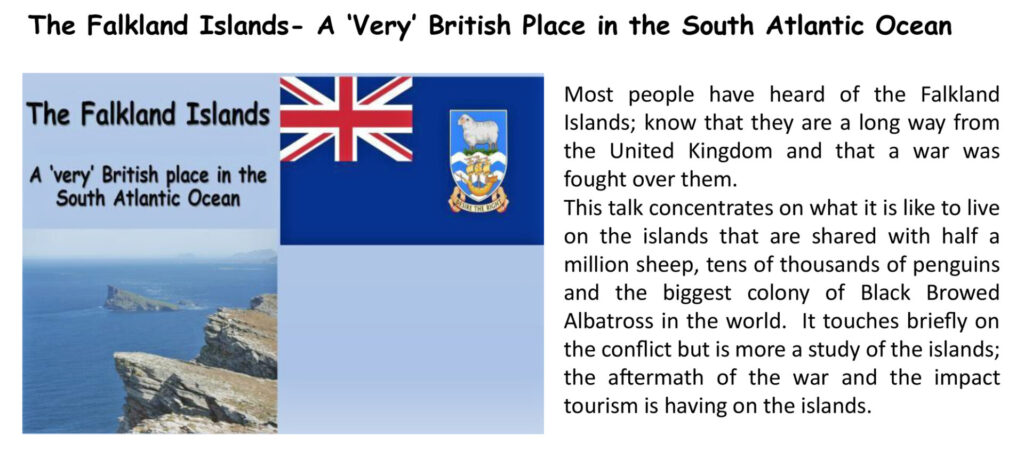 He has a particular interest in Sir Ernest Shackleton and has been to many places associated with him. He has a detailed knowledge of the Heroic Age of Antarctic expeditions and shares his enthusiasm to his audiences with anecdotes and detailed accounts of the hardship the early explorers endured.