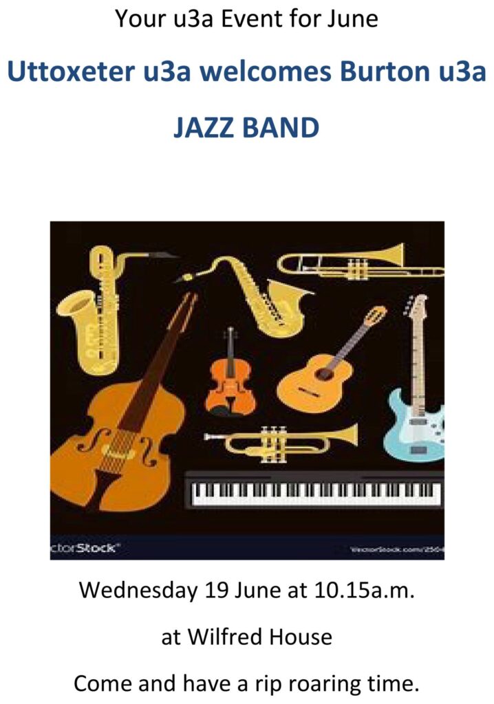 | 19 June | Burton u3a Jazz Group | Event Team |